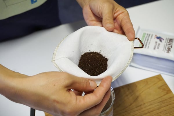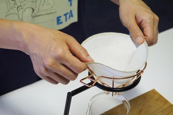洋服を作る過程でどうしても避けられず出てしまう「裁断くず」を活用した、繰り返し使えるコーヒーフィルター。